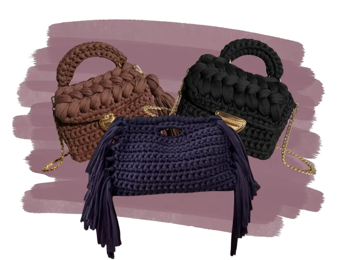 Qui accade la parte più affascinante: mani esperte intrecciano ogni punto con cura, dando forma alla borsa lentamente, con precisione e creatività.