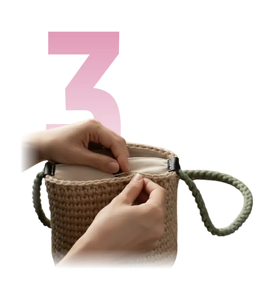L’ultimo passaggio è la mia firma. Controllo ogni dettaglio, rifino i bordi, aggiungiendo elementi unici e mi assciuro che la borsa sia pronta a conquistare il mondo con te.